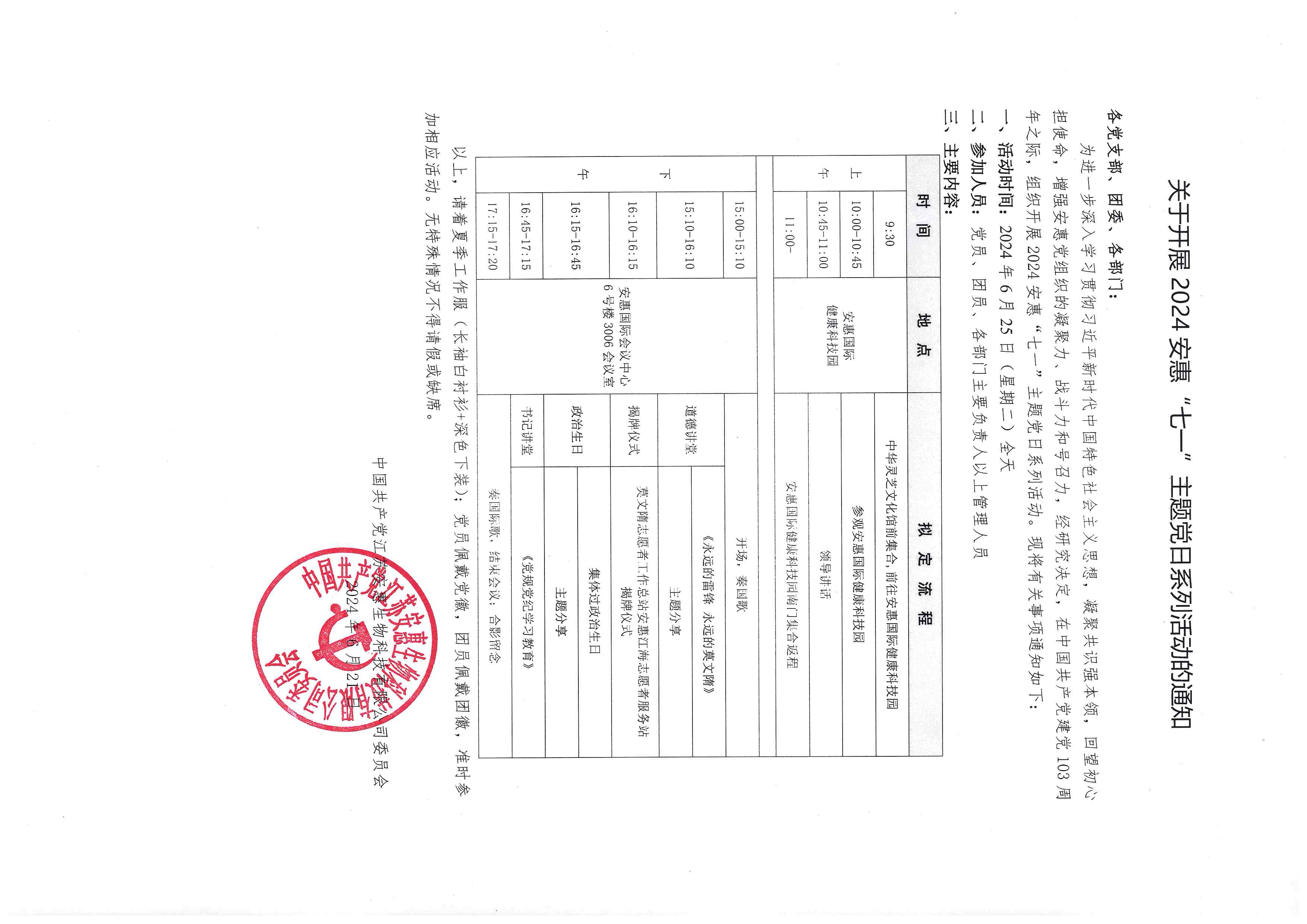 關于開展2024安惠“七一”主題黨日系列活動的通知