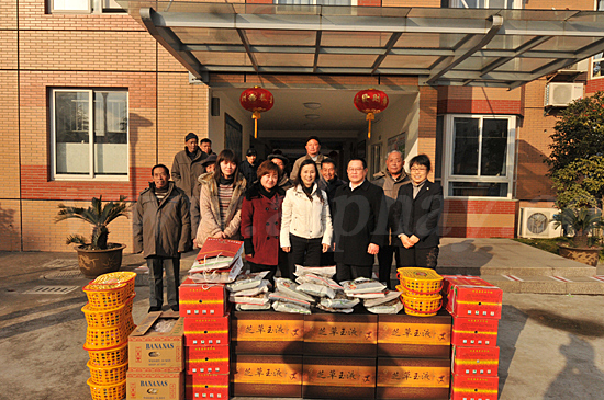 2014年1月23日上午,安惠公司黨委副書記金敏林、工會主席李士強、團委書記竺婷一行來到南通開發(fā)區(qū)敬老院,看望和慰問在這里生活居住的老人,為他們送去靈芝酒、食用油、水果等節(jié)日慰問物資,表達全體安惠人對他們的關(guān)懷。