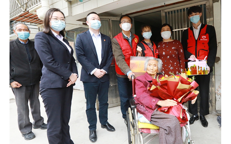 2022年5月10日,安惠江海志愿者代表與“期頤(百歲)老人慰問及志愿服務(wù)”項(xiàng)目的其他組織志愿者一同來到開發(fā)區(qū)小海鎮(zhèn)星嘉、星景兩個(gè)社區(qū),慰問在本月過生日的兩位102歲高齡老人。安惠公司副董事長陸漢萍為老人們送上芝草玉液酒、木耳、香菇等慰問品,并與老人親切交談,希望老人們保重身體,保持心情愉悅,約定明年再來看望。兩位老人對(duì)愛心志愿者給予的關(guān)心表示感謝。